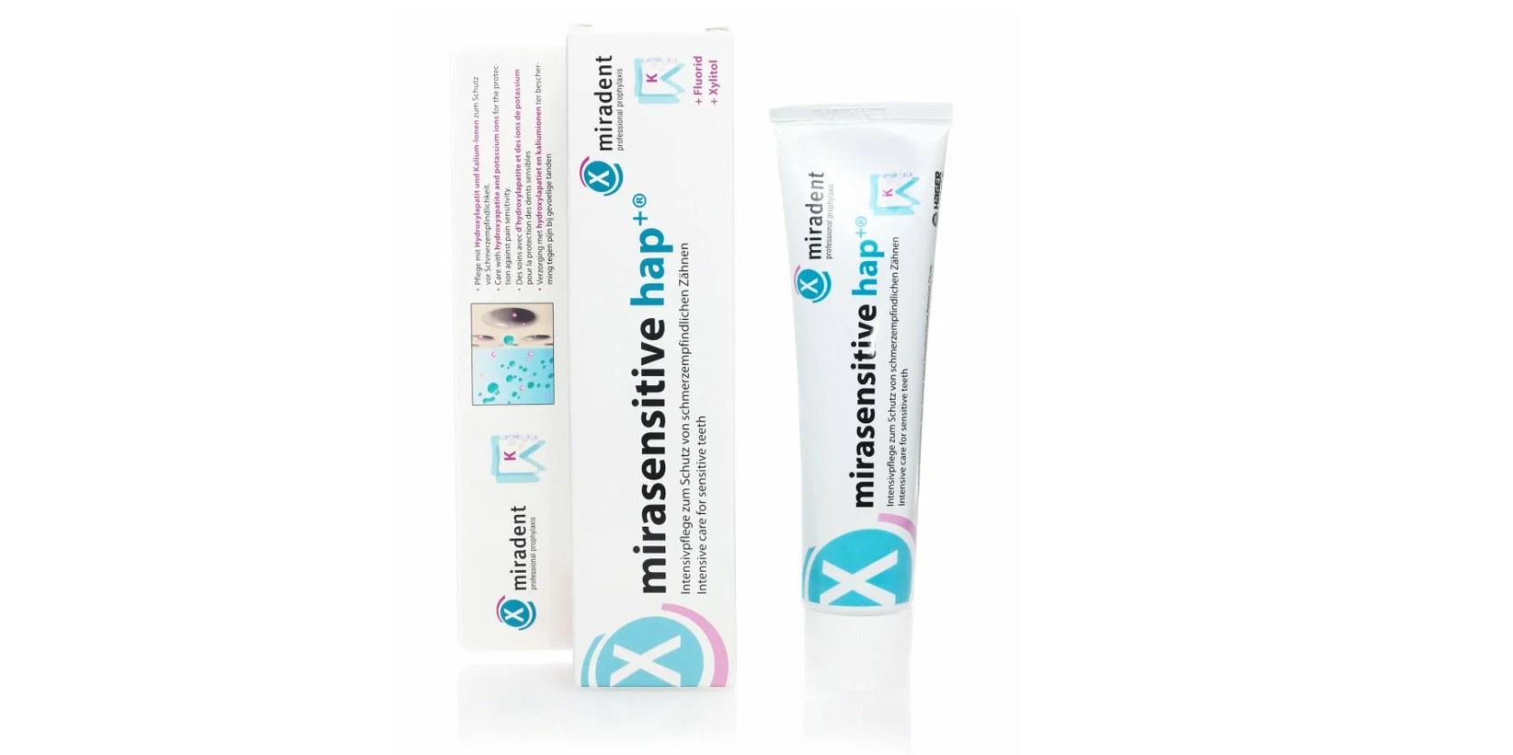 Зубная паста для чувствительных зубов Mirasensitive hap+ обеспечивает интенсивный уход и способствует снижению сверхчувствительности зубов.