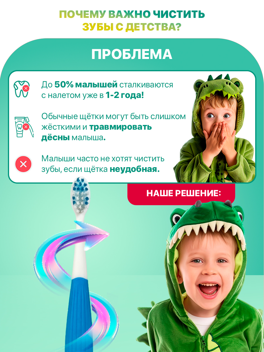 Это результат работы высококвалифицированных стоматологов, которые учли все особенности и потребности ухода за полостью рта ребенка. Она обладает уникальной технологией щетины, которая делает процесс чистки зубов более эффективным и безопасным для детей.