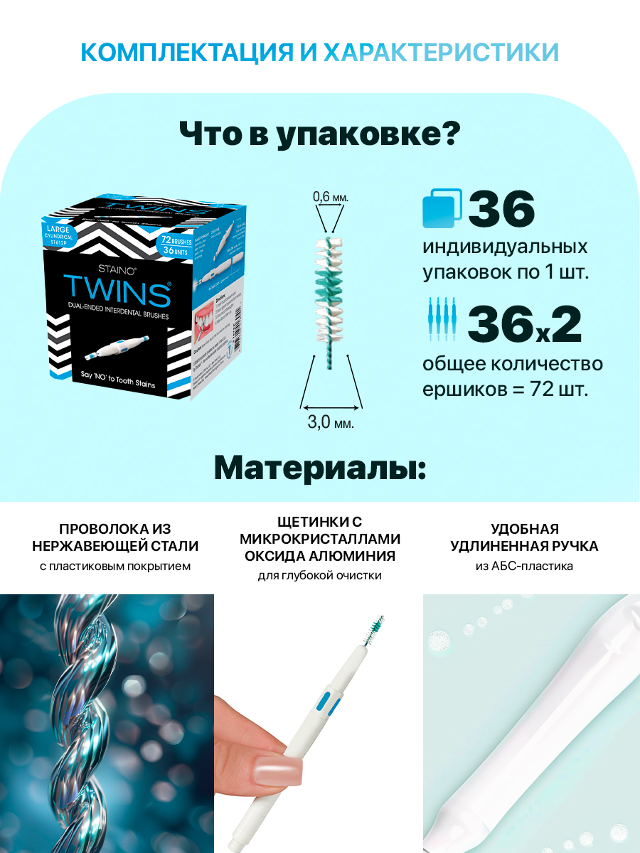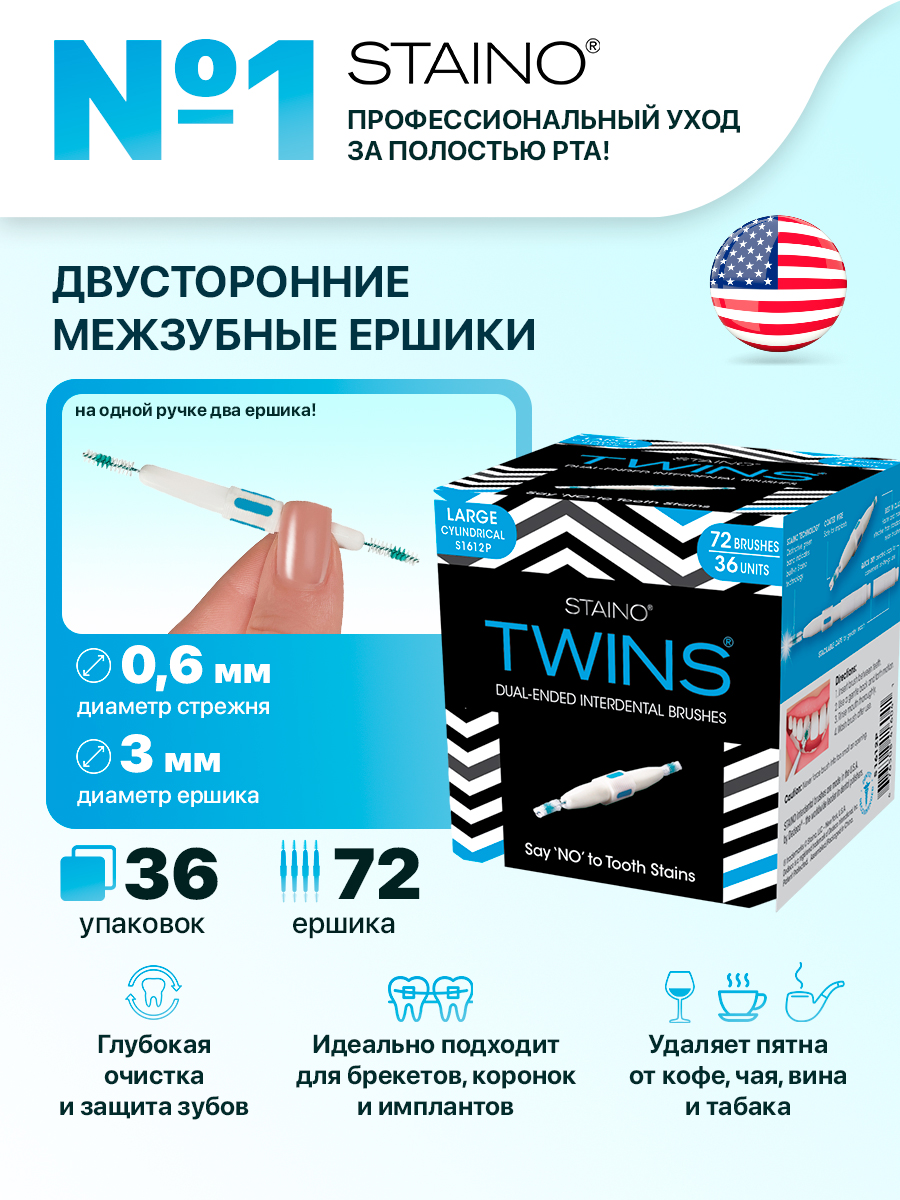 Представляем TWINS® от STAINO — инновационные двусторонние межзубные ершики, разработанные для обеспечения безупречной чистоты и здоровья вашей полости рта.