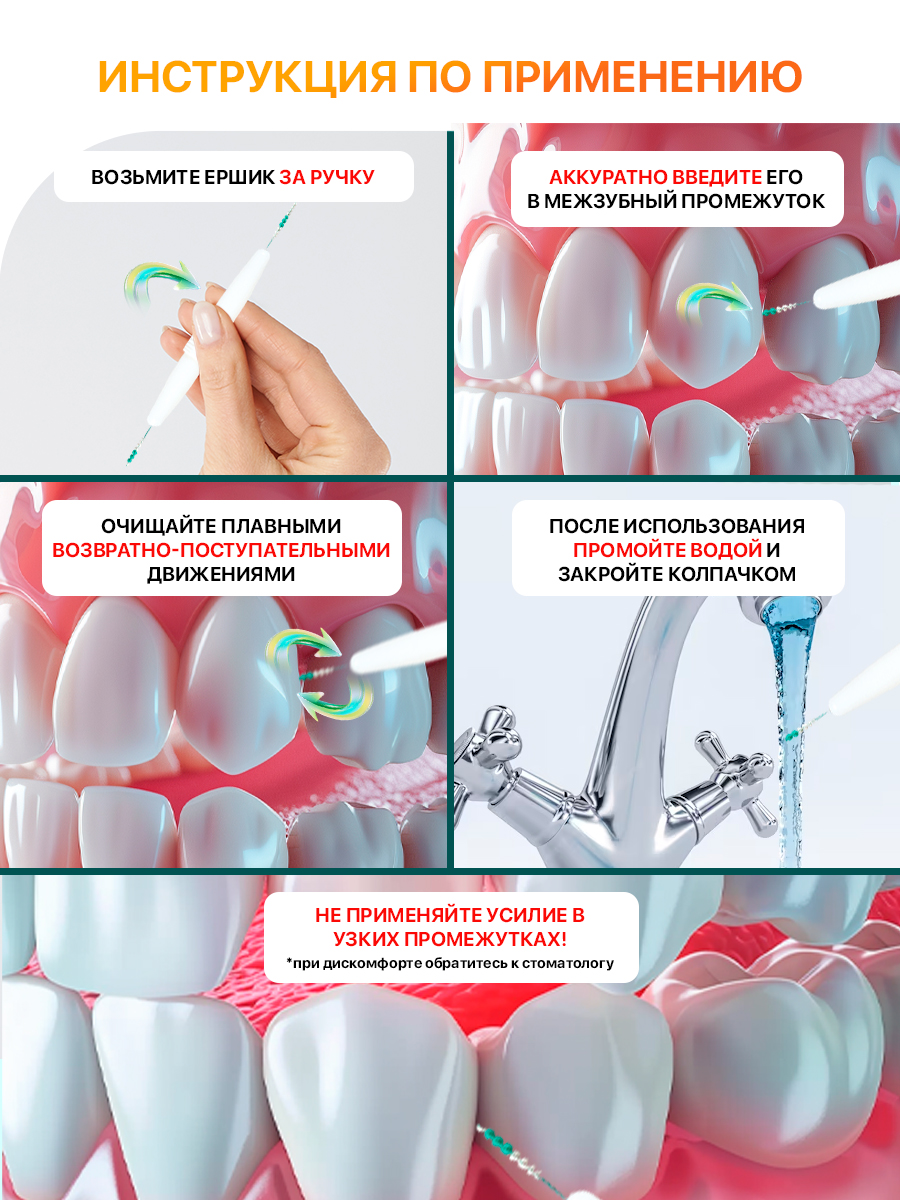 - После использования прополощите рот и промойте ершик.