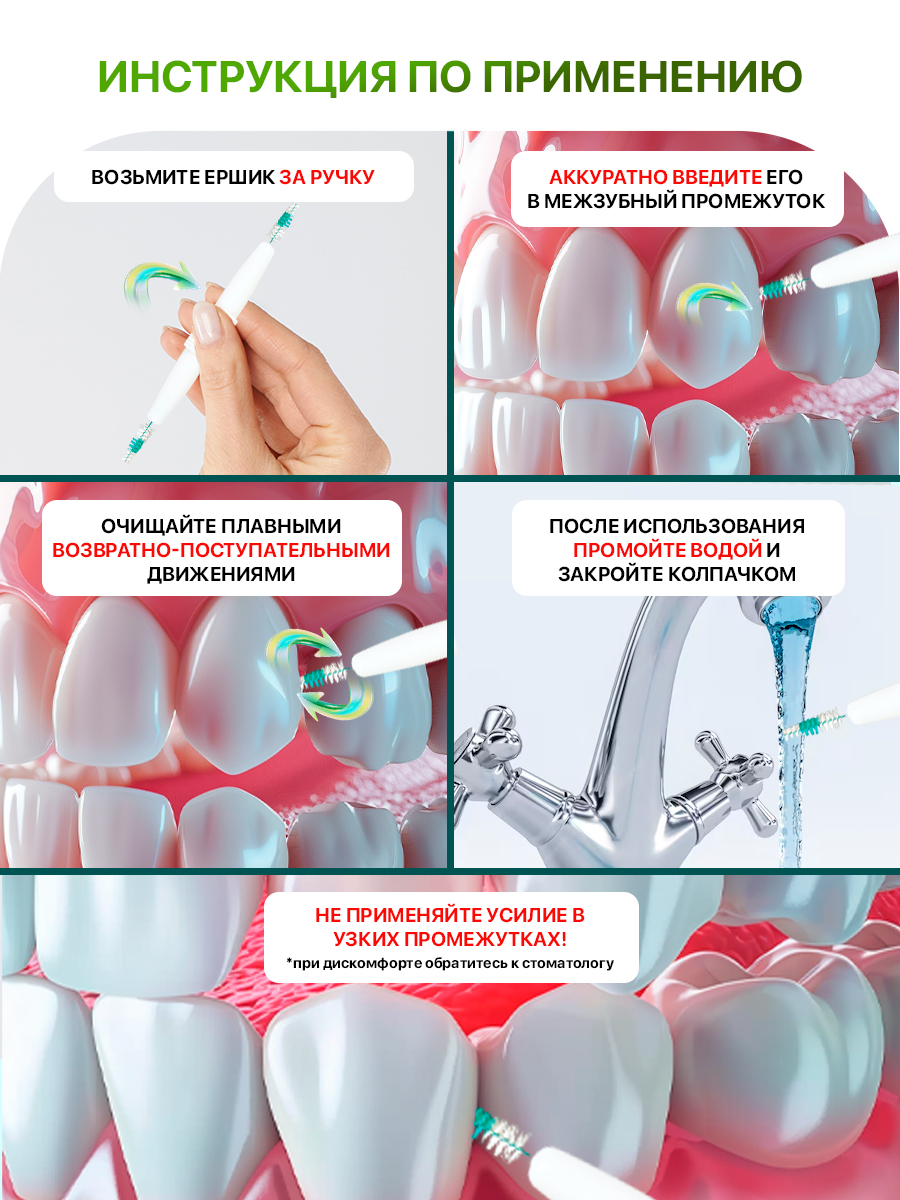 - После очистки прополощите рот водой, промойте ершик и закройте колпачком.
