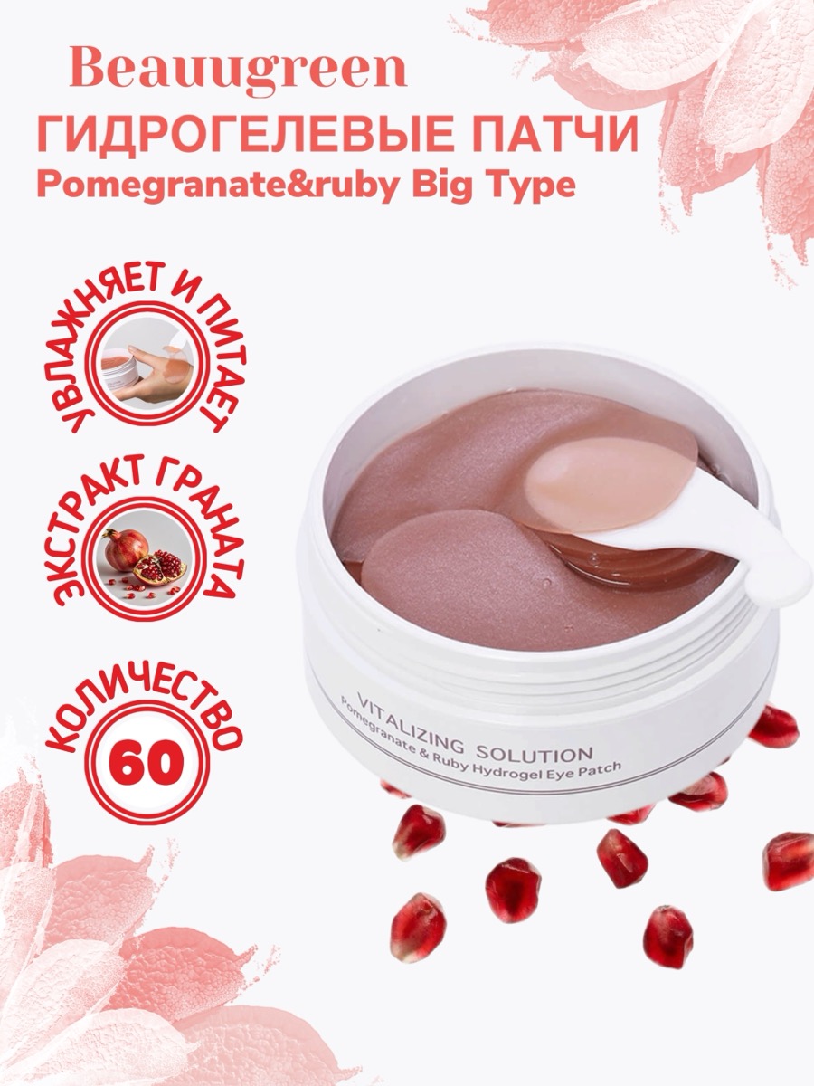 Beauugreen Pomegranate & Ruby — это сочетание натуральных компонентов и современных технологий в уходе за кожей вокруг глаз. Патчи помогут справиться с признаками усталости, вернуть коже ухоженный вид и сохранить молодость при регулярном применении. Это удобное и эффективное решение для тех, кто ищет качественный уход в домашних условиях.