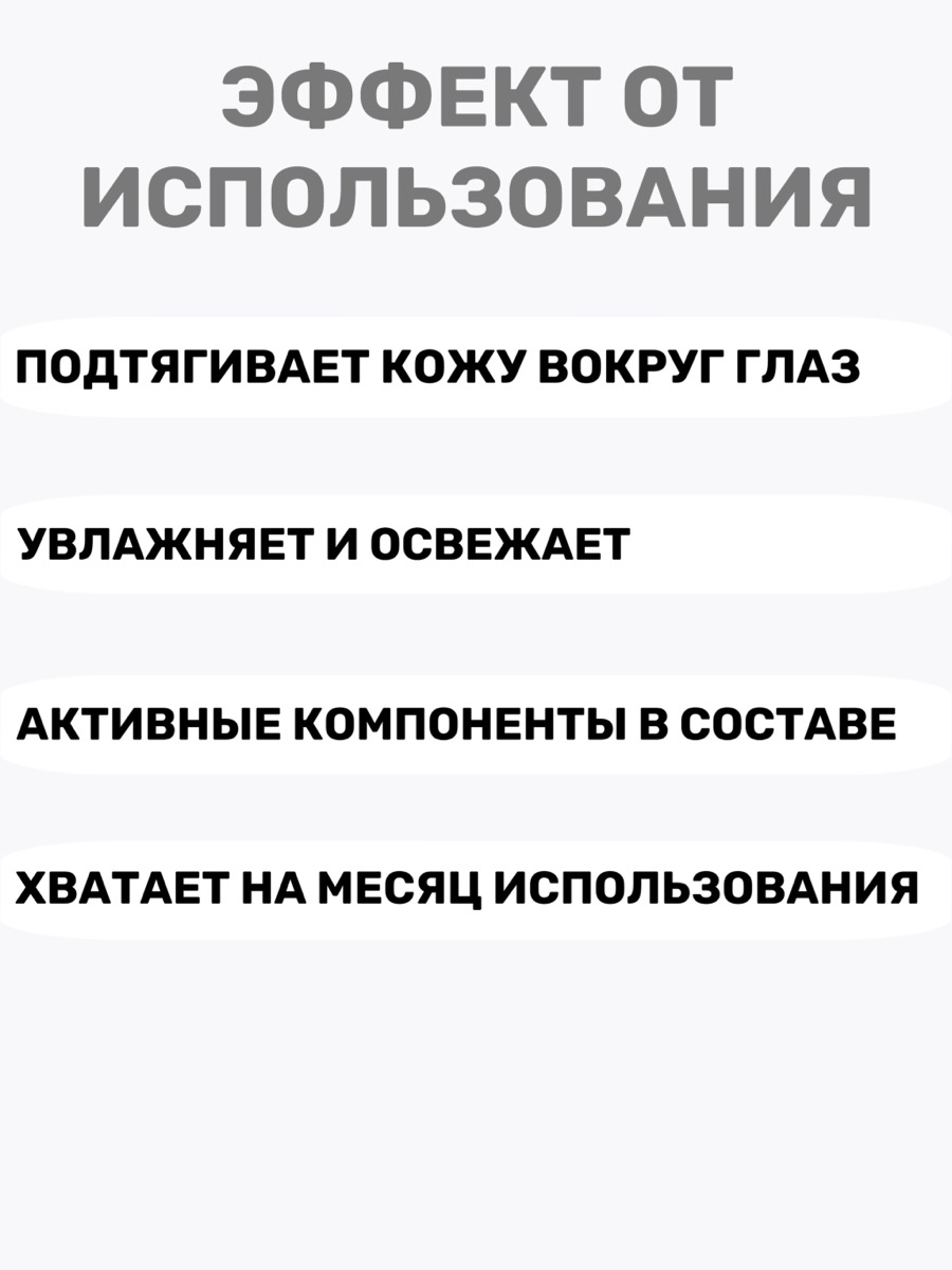 Чёрный гидрогель, входящий в состав патчей, обеспечивает плотное прилегание и способствует глубокому проникновению активных компонентов. Благодаря охлаждающему эффекту уменьшается отечность, улучшается микроциркуляция, что помогает в борьбе с тёмными кругами под глазами. Средство подходит для чувствительной кожи и не вызывает раздражений, при этом обеспечивает выраженный лифтинг-эффект уже после первого применения.