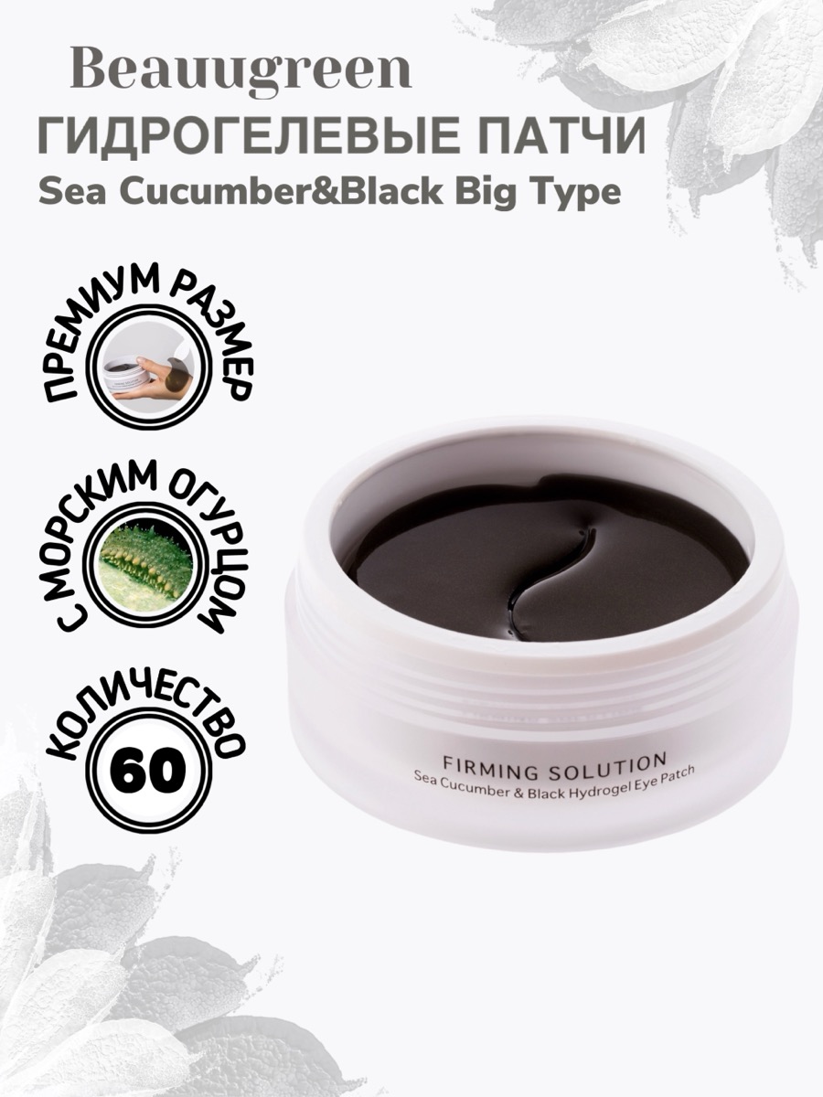 Гидрогелевые лифтинг патчи Beauugreen Sea Cucumber & Black Hydrogel Eye Patch (Big Type) — это эффективное средство для ухода за кожей вокруг глаз. Формула продукта основана на экстракте морского огурца, известного своими восстанавливающими и увлажняющими свойствами. Он способствует укреплению кожи, улучшает её эластичность и помогает справиться с возрастными изменениями. Компонент стимулирует регенерацию клеток и насыщает кожу питательными веществами, устраняя признаки усталости и снижая выраженность морщин.