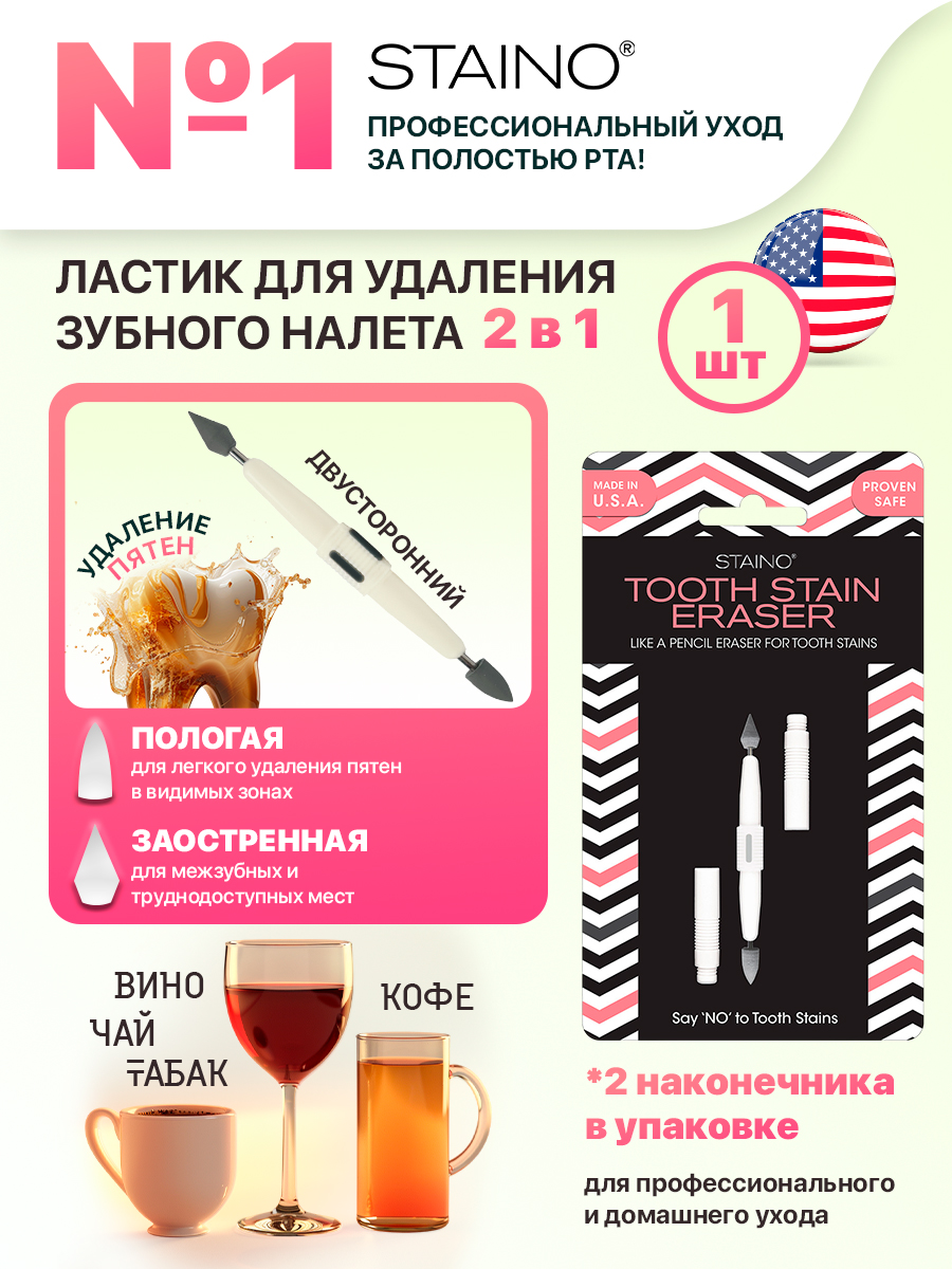 STAINO Ластик для удаления зубного налета, двусторонний, 2 головки (1 шт.) S1655