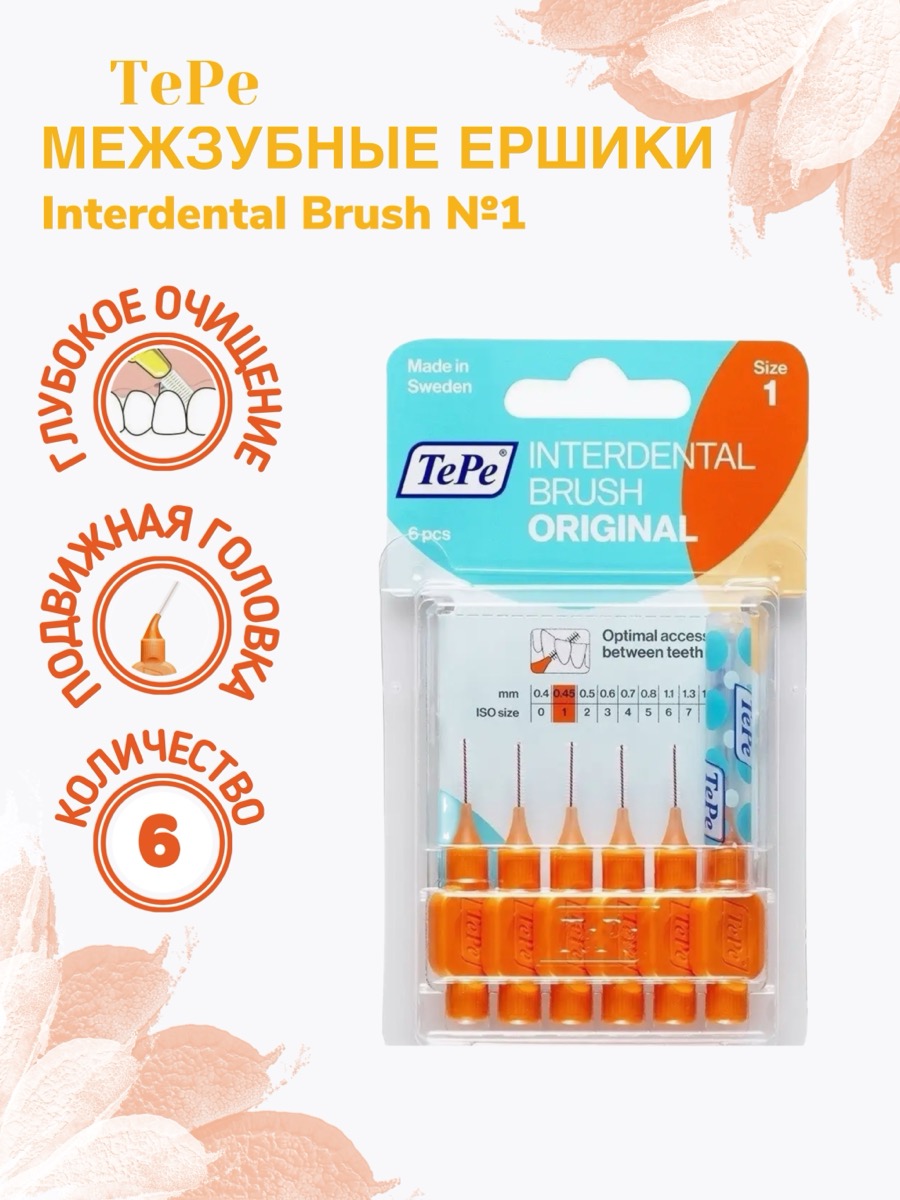 Межзубные ершики TePe Interdental Brush №1 — это эффективное средство для тщательной гигиены межзубных промежутков, где обычная зубная щётка не справляется. Изделия разработаны шведской компанией TePe, известной своими высококачественными стоматологическими аксессуарами. Ершики предназначены для удаления налёта, остатков пищи и предотвращения воспалений дёсен, особенно в труднодоступных участках между зубами. Размер №1 (0,45 мм) подходит для узких межзубных пространств, обеспечивая безопасное и мягкое очищение без травмирования дёсен и эмали.