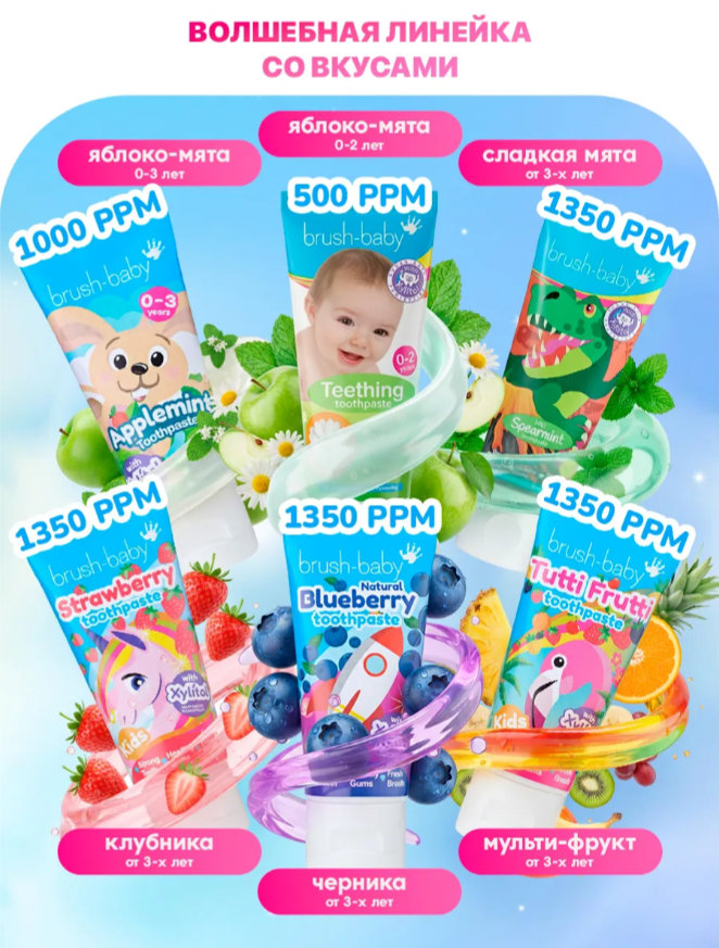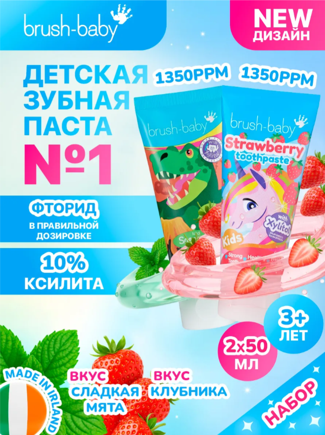 Набор Brush-Baby Spearmint и Strawberry создан специально для детей от 3 лет.