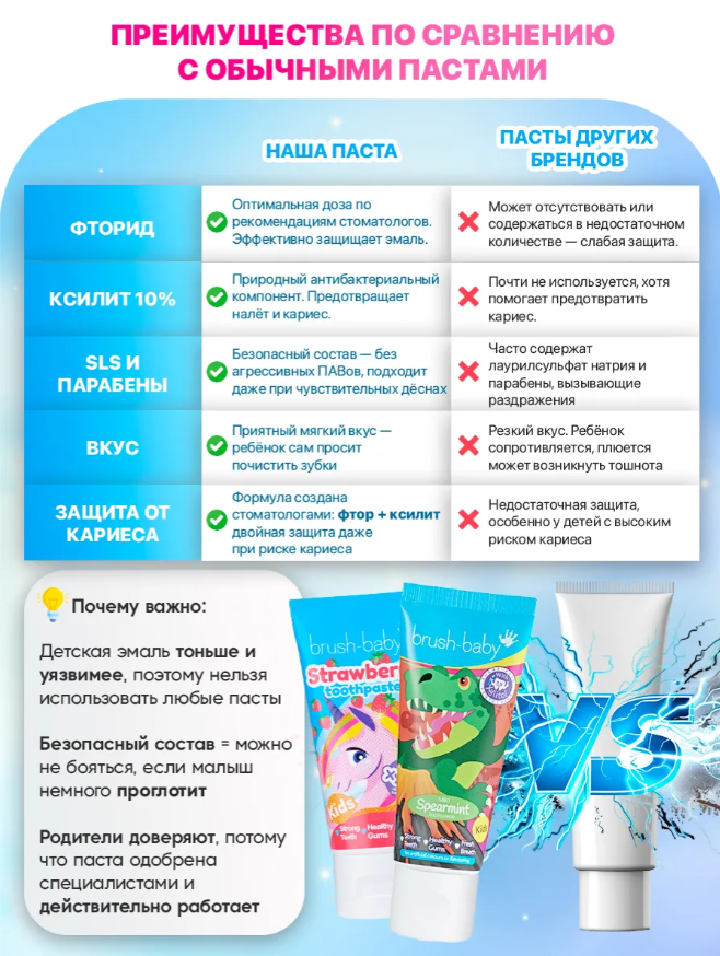 Он сочетает мягкое очищение, приятные вкусы и надёжную защиту от кариеса.