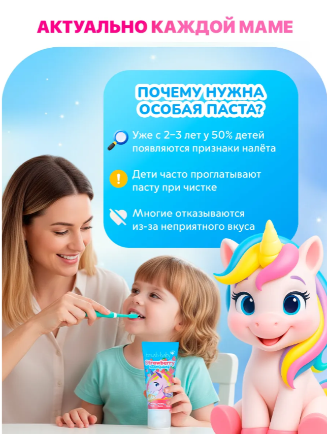 Свежесть мяты и сладость клубники — идеальный дуэт для детской улыбки!