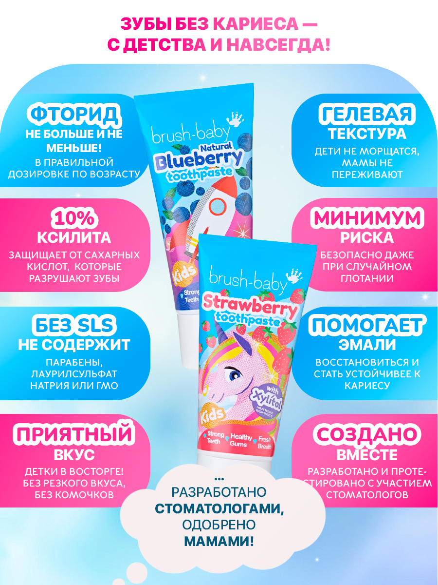 Набор Brush-Baby Strawberry и Blueberry создан специально для детей от 3 лет, чтобы чистка зубов стала любимым ритуалом.