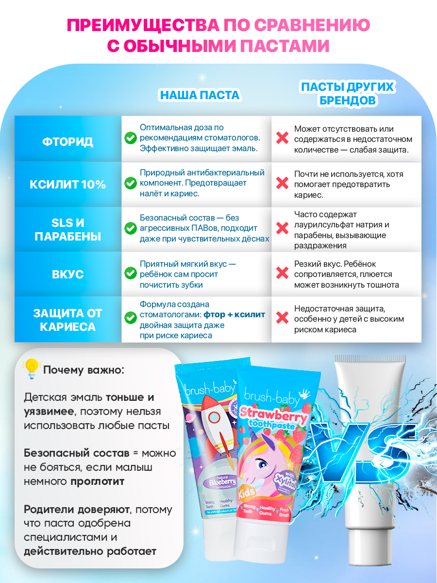 а вкусные ароматы клубники и черники превращают уход за зубами в весёлую привычку.