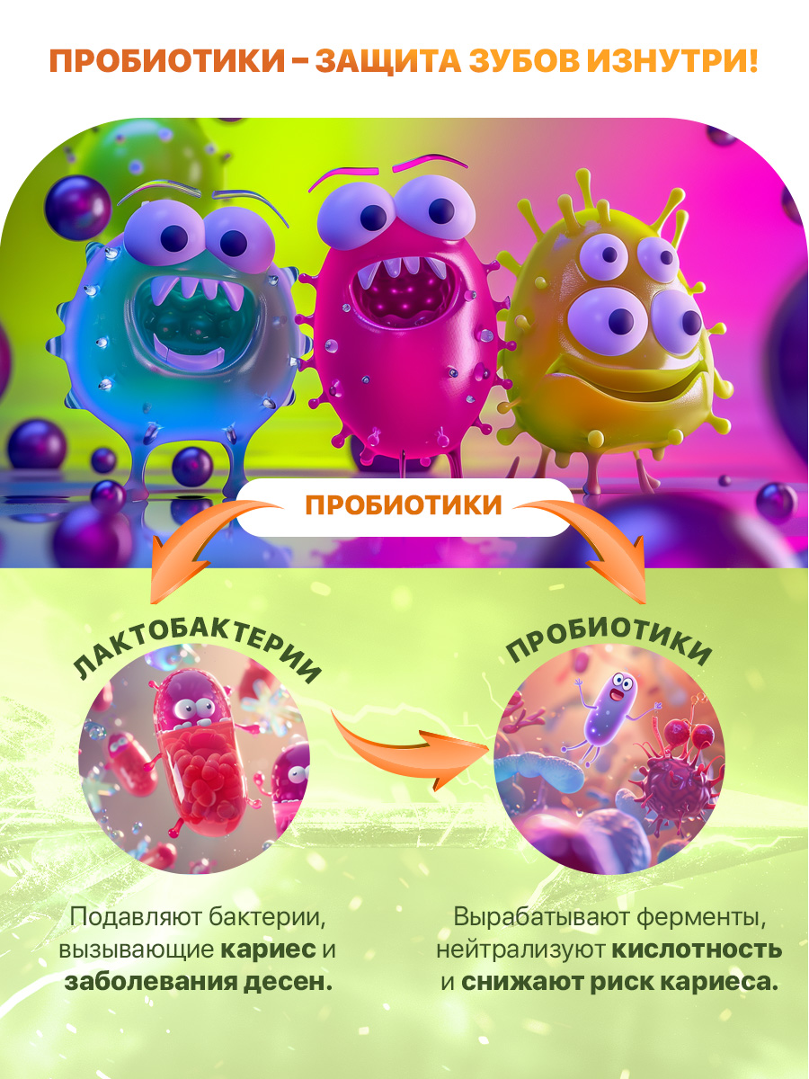 Сорбитол, вода, диоксид кремния (бережный абразив), ксилитол, натуральный ароматизатор персик, растительные экстракты.