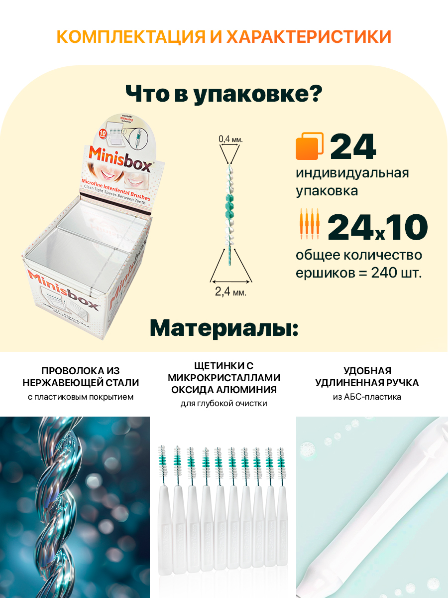 - Высокое качество ершиков: разработаны для эффективной очистки межзубных промежутков.
