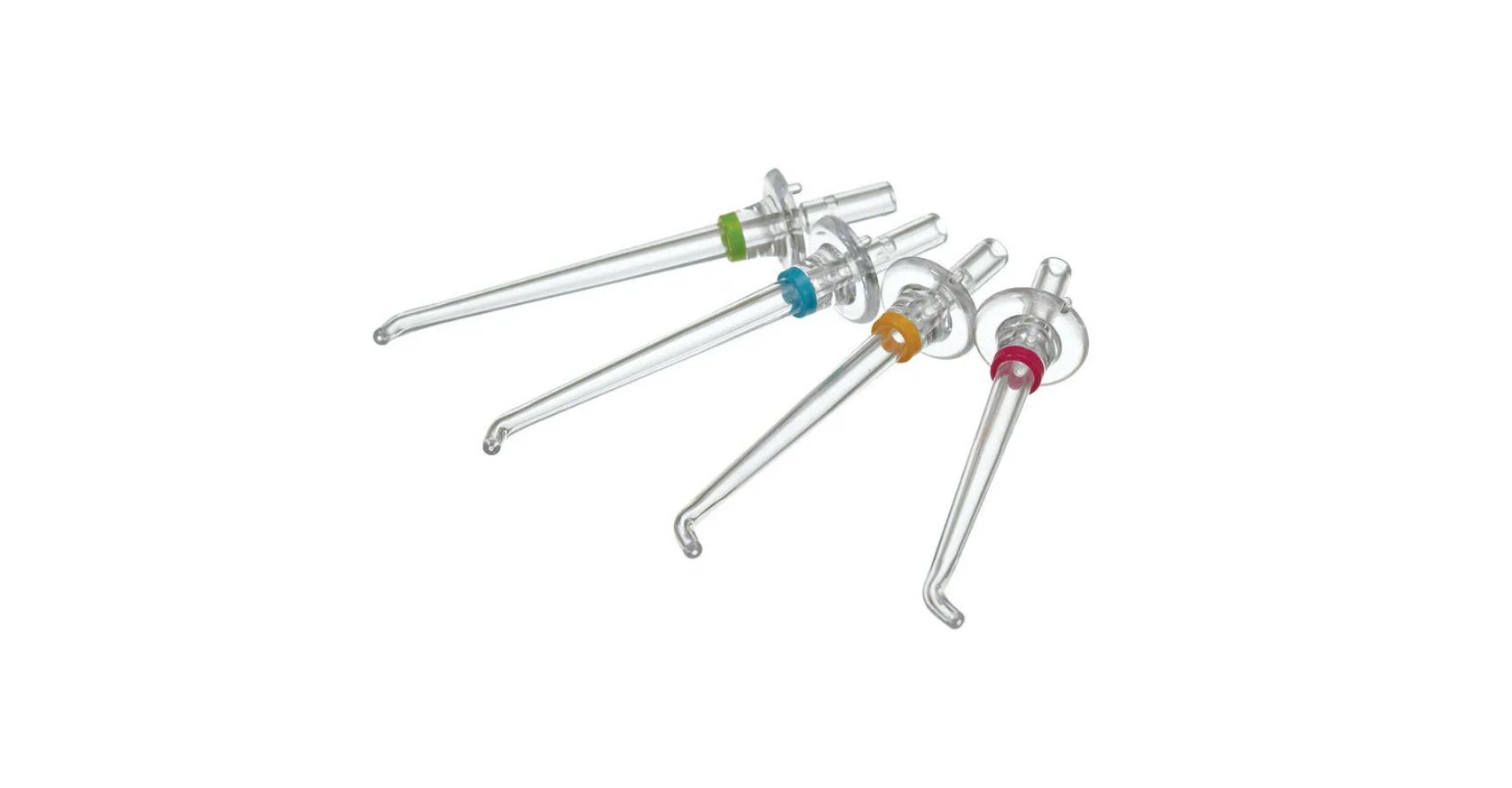 Насадки снабжены разноцветными колечками, позволяющими легко различать их.