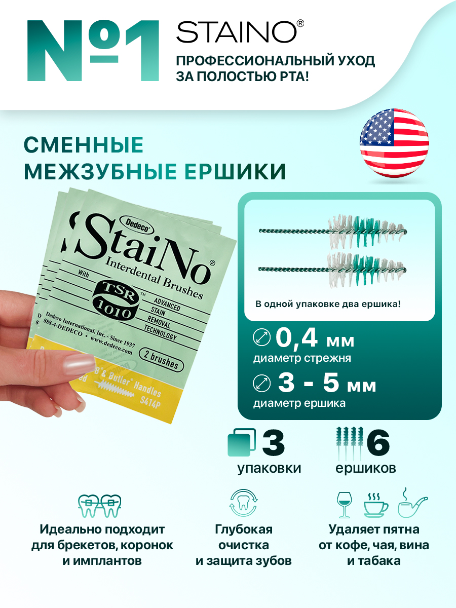 STAINO – Сменные межзубные ершики Ultra Tapered 0.4 мм (6 шт)