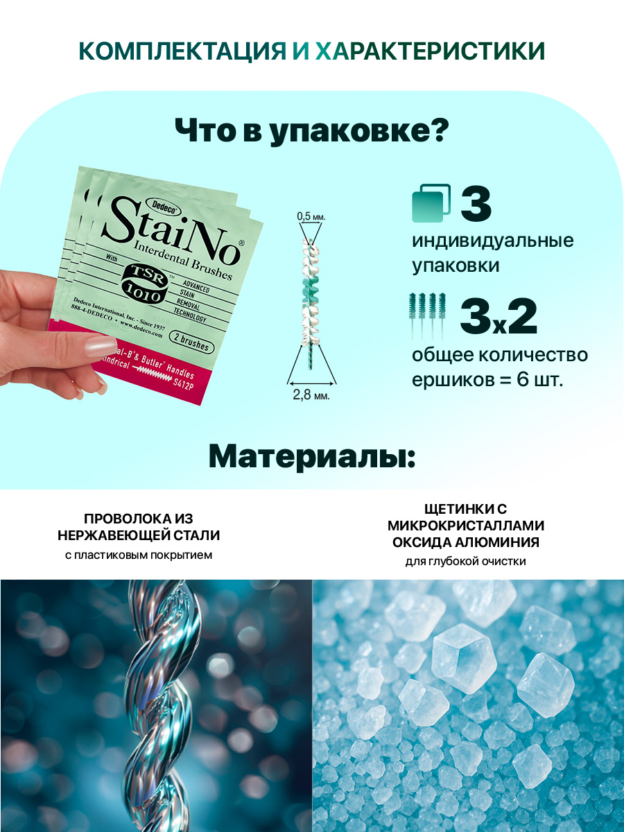 - Комплектация: 3 пакетика по 2 ершика (всего 6 шт)