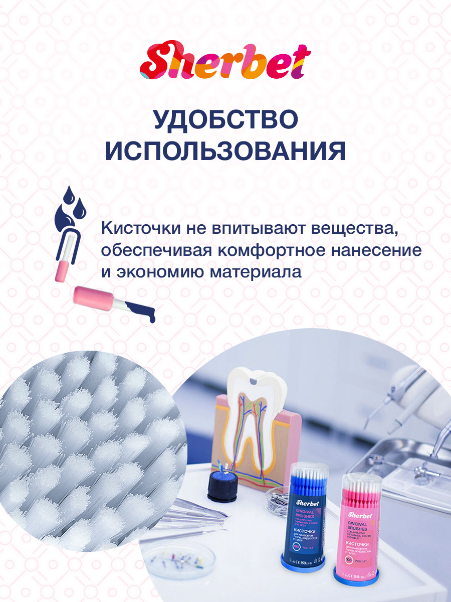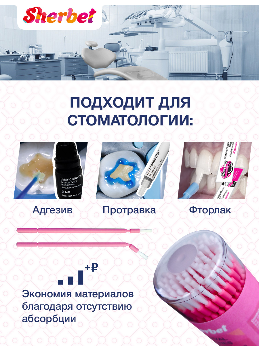 Одноразовые микроаппликаторы (микробраши) обеспечивают аккуратное нанесение стоматологических составов даже в труднодоступных зонах. Гибкая ножка и микроволоконная головка позволяют работать быстро, чисто и без перерасхода материалов.